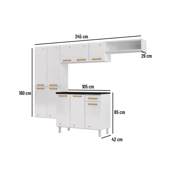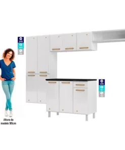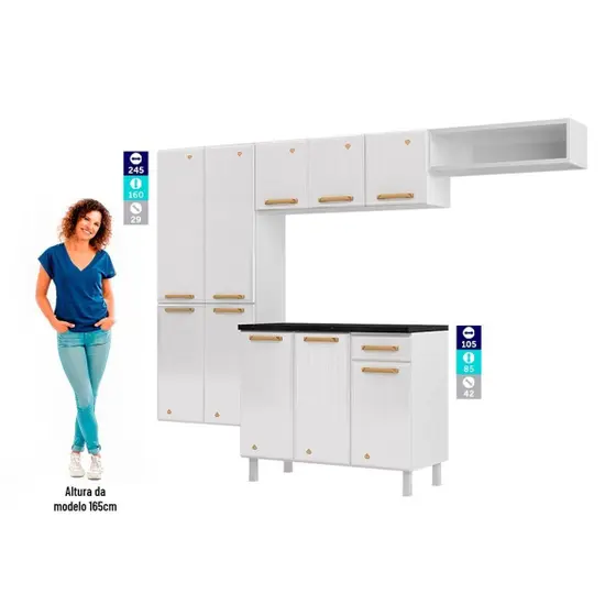 Cozinha Modulada Completa Diamante Smart 4 Peças (2 Armários + 1 Balcão + 1 Paneleiro) Branco – Telasul