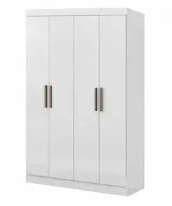 Guarda Roupa de Solteiro Paris 4 Portas MDF Branco Brilho Maxel