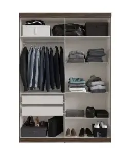 O Guarda-Roupa Paris 4 portas oferece elegância e praticidade, além de combinar com qualquer ambiente. Este produto apresenta um amplo espaço interno, que conta com cabideiro, prateleiras, calceiros e 2 gavetas que possibilitam uma melhor organização.