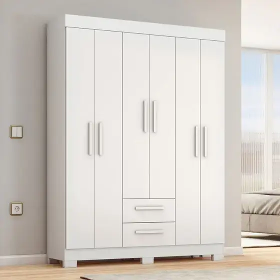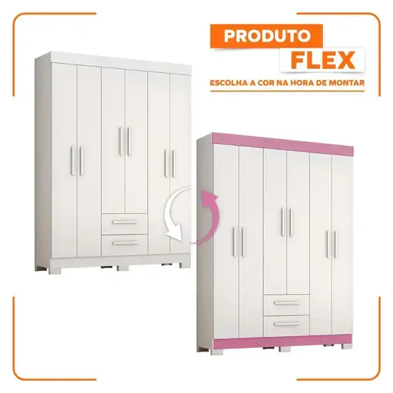 O Guarda Roupa Solteiro Flex com Pés 6 Portas 2 Gavetas NT 6015 Notável Móveis é a solução para a organização e armazenamento em seu quarto. Equipado com um amplo cabideiro interno e quatro prateleiras espaçosas, este guarda-roupa proporciona espaço mais que suficiente para armazenar suas roupas, sapatos e acessórios de maneira organizada e acessível! A cor deve ser escolhida no momento da montagem, não podendo ser alteradas depois. Características: