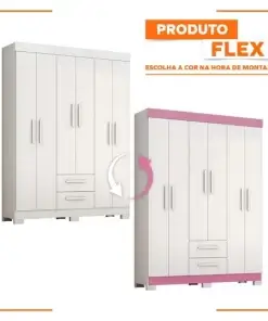Guarda Roupa Solteiro Flex com Pés 6 Portas 2 Gavetas NT 6015