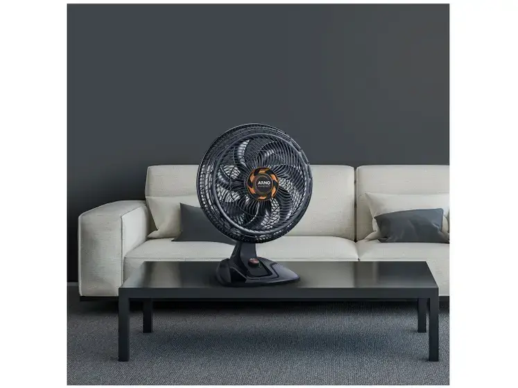 Máximo alcance, mínimo ruído. O Ventilador X-treme 7 da Arno de mesa 40 cm possui uma tecnologia única que tem a melhor combinação de máximo vento com conforto sonoro. Potência X-treme Silêncio que deixa os ambientes muito mais agradáveis e refrescantes. Com longo alcance de ar de até 11 metros. Conta com a Power Zone, uma área concentrada que garante o máximo de vento direcionado, oferecendo performance superior para que você não sofra com o calor e possui a exclusiva grade Chevron Zone que proporciona um conforto muito maior do som. Máximo alcance de vento, extremamente potente com 7 pás e 3 velocidades que atendem a cada necessidade. Design moderno, fácil de montar, transportar e desmontável para armazenar quando não estiver em uso, versátil com 80° de oscilação horizontal e 4 inclinações verticais e 150W de potência. Compacto nas cores cinza e cobre, que vai combinar perfeitamente com outros móveis ou eletrônicos do ambiente. A Arno é marca mais desejada e especialista há 80 anos em ventilação.