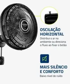 OTIMIZAÇÃO DO ESPAÇO + SUPORTE DE AÇO REFORÇADO: O ventilador de parede permite maior otimização do espaço. Além disso, o suporte que prende o aparelho à parede é de aço reforçado, garantindo maior sustentação e durabilidade.